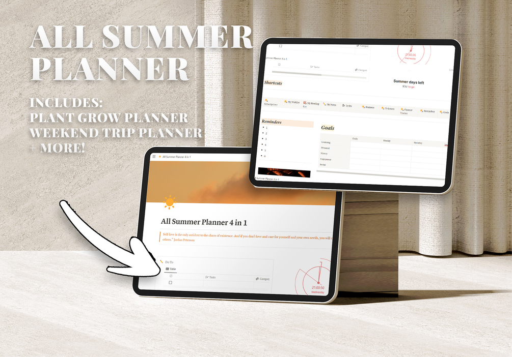 Get Ready for the summer with the All-Summer Planner, this template includes everything you need to waste no time in the summer ✨